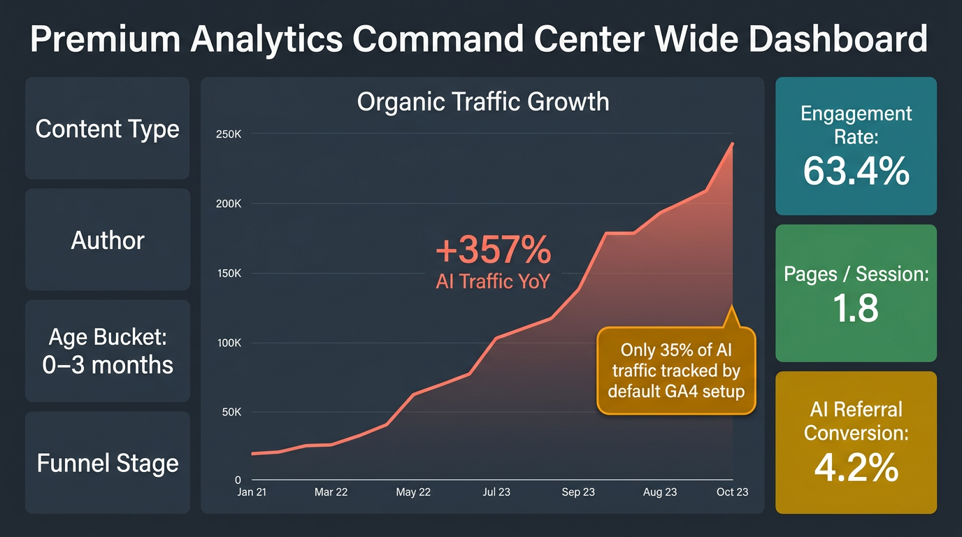 But most content teams use GA4 poorly. They rely on default reports, never set up custom dimensions, and miss entire traffic segments from AI search engines. The result is incomplete data that leads to bad content decisions.