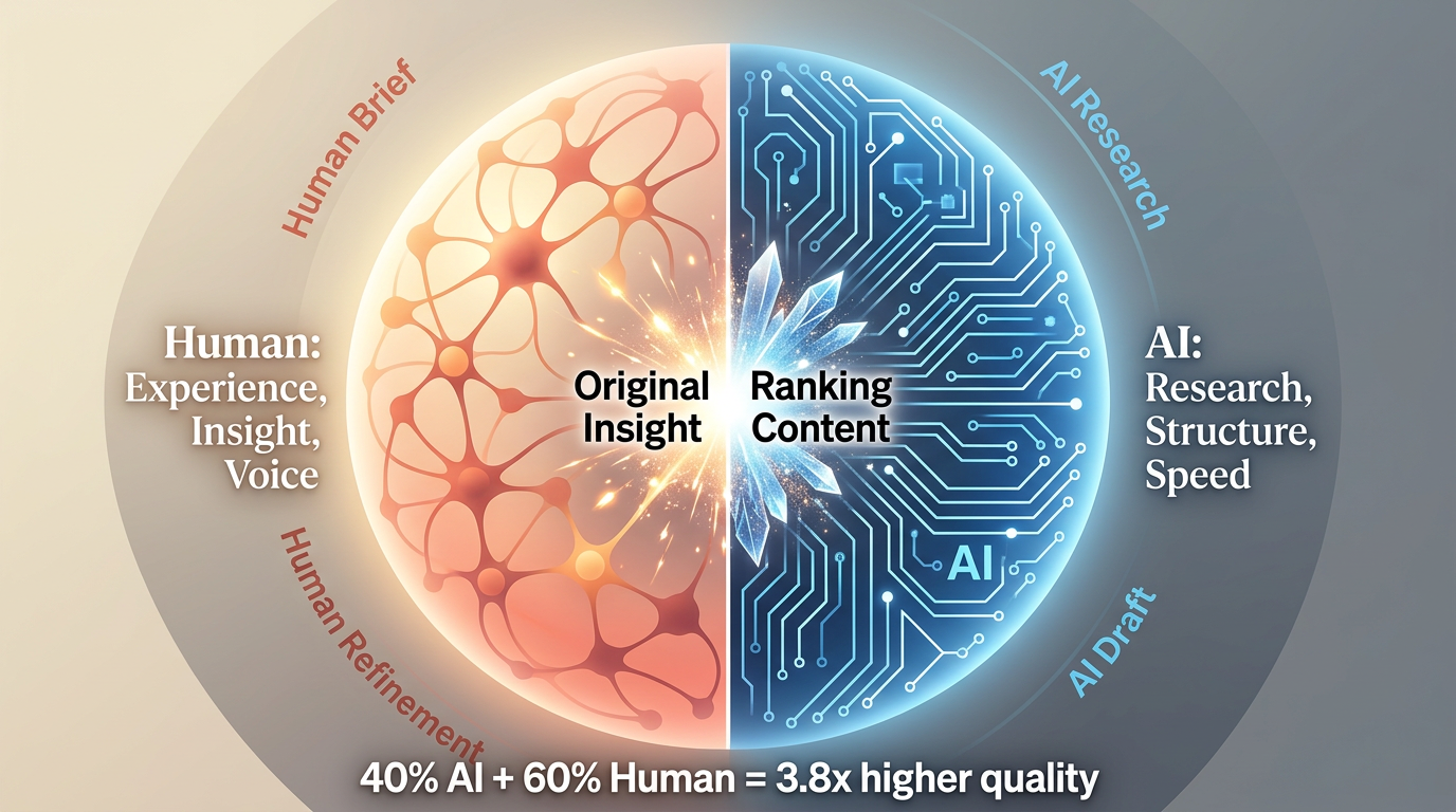 Evidence: Teams using 40-60% AI content see 3.8x higher rankings than 100% human content