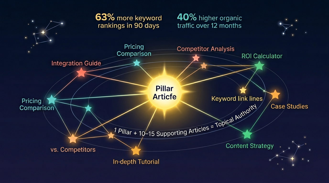 Start with one cluster. Pick your highest-opportunity topic, build a pillar page and 5-7 supporting articles over 2-3 months, and measure the compounding effect. The data is clear: clustered content outperforms standalone pages on every metric that matters.